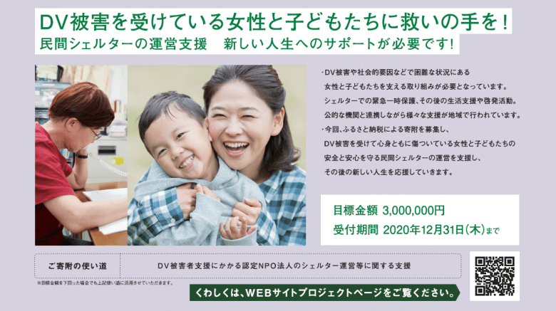 そのための活動資金として今回神戸市のふるさと納税として10月19日~12月31日まで寄付をお願いしております。今回のキャンペーンを通してDV被害への理解と支援、当団体への共感の輪が全国各地に広がることを願っております。
